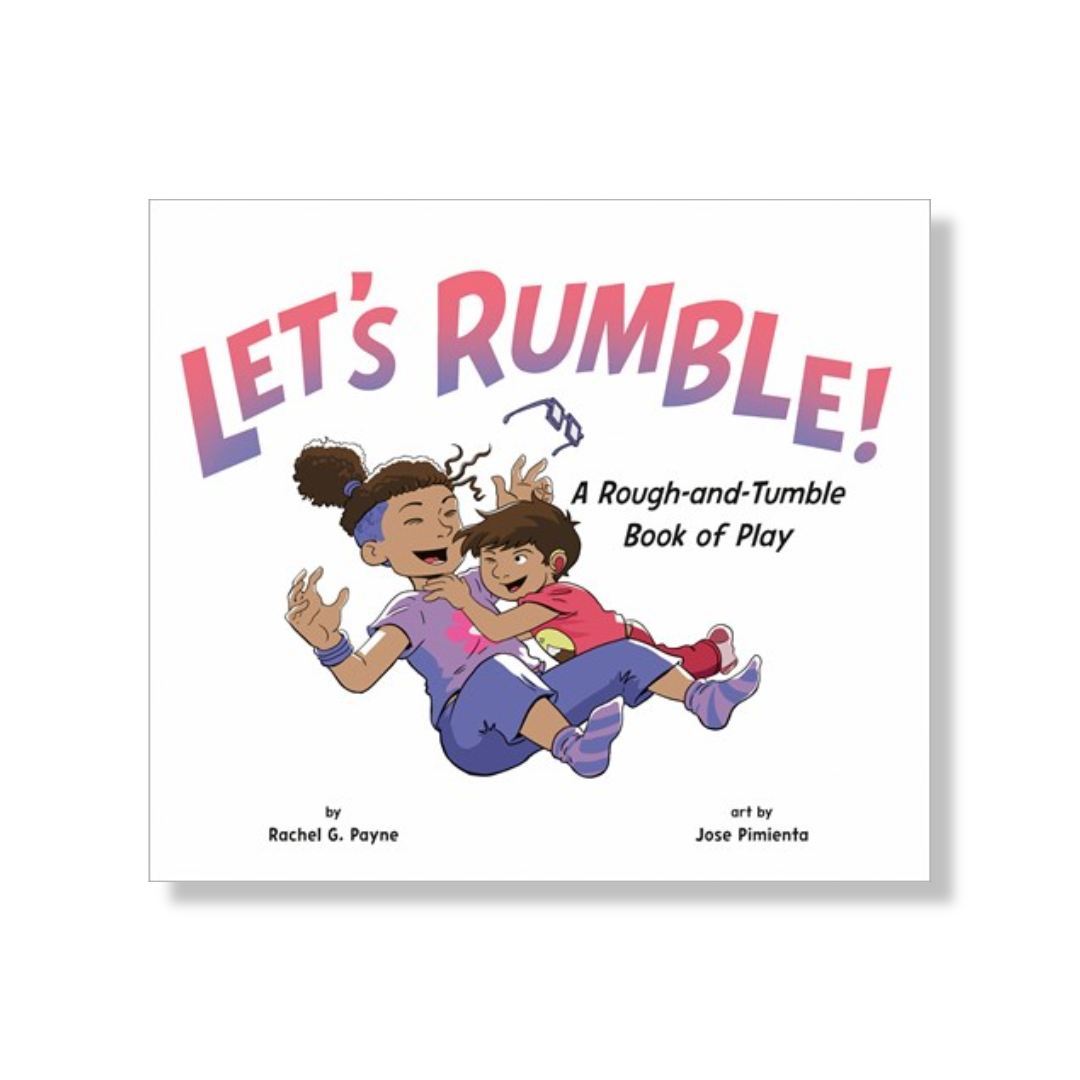 When the oldest and youngest siblings decide to rumble, they do so with great imagination and careful consent. Wrecking ball! Steamroller! Bear hug! Sandwich!... The list goes on of inspiringly creative physical play scenarios, with a running narration of text bubbles between kids. When the middle sibling decides to join, the other two inform her of their code word (“Cantaloupe”), which means “Stop everything!” An engaging and encouraging model of healthy rough-and-tumble play, the benefits of which are explained in pointer-rich back matter for parents and caregivers.