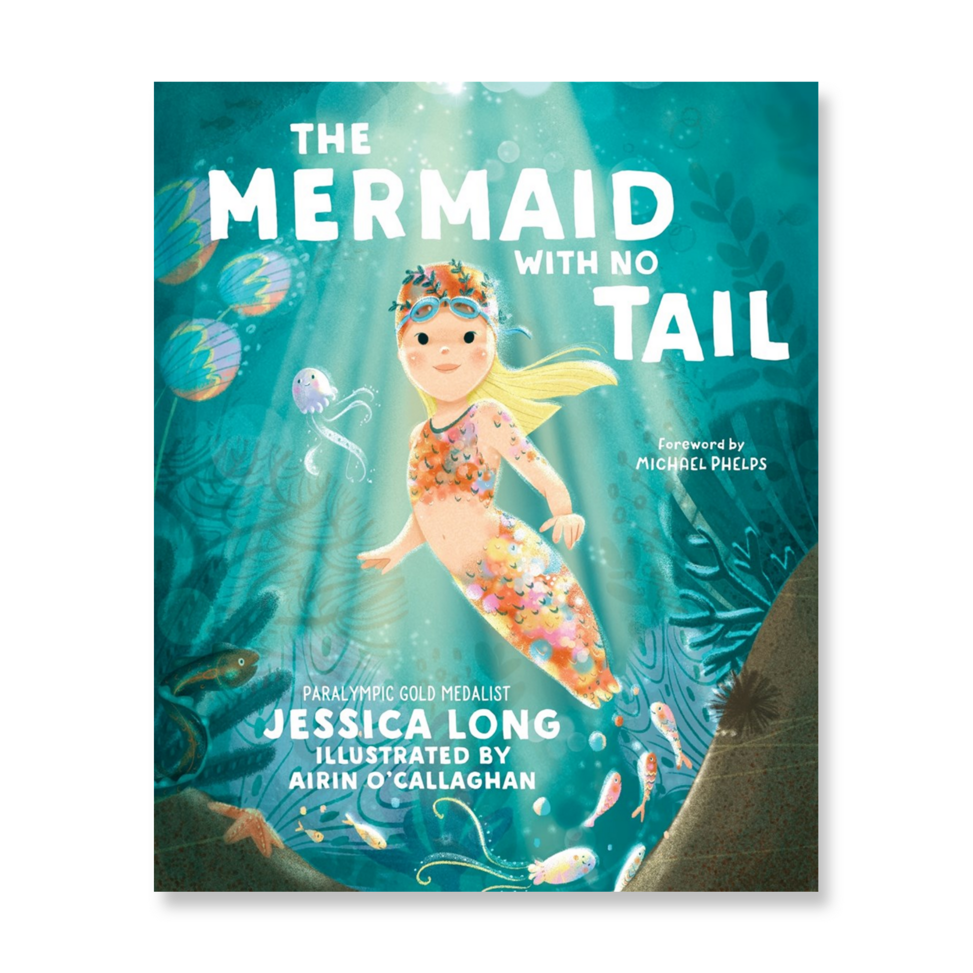 The Mermaid with No Tail is inspired by the life of Jessica Long. Jessica was adopted from a Russian orphanage when she was a baby and grew up in Baltimore. She was born with fibular hemimelia. Her legs were amputated below the knee when she was 18 months old so she could be fitted with prosthetic legs and learn how to walk. A real-world Paralympic swimmer, Jessica is one of the most decorated American athletes of all time.